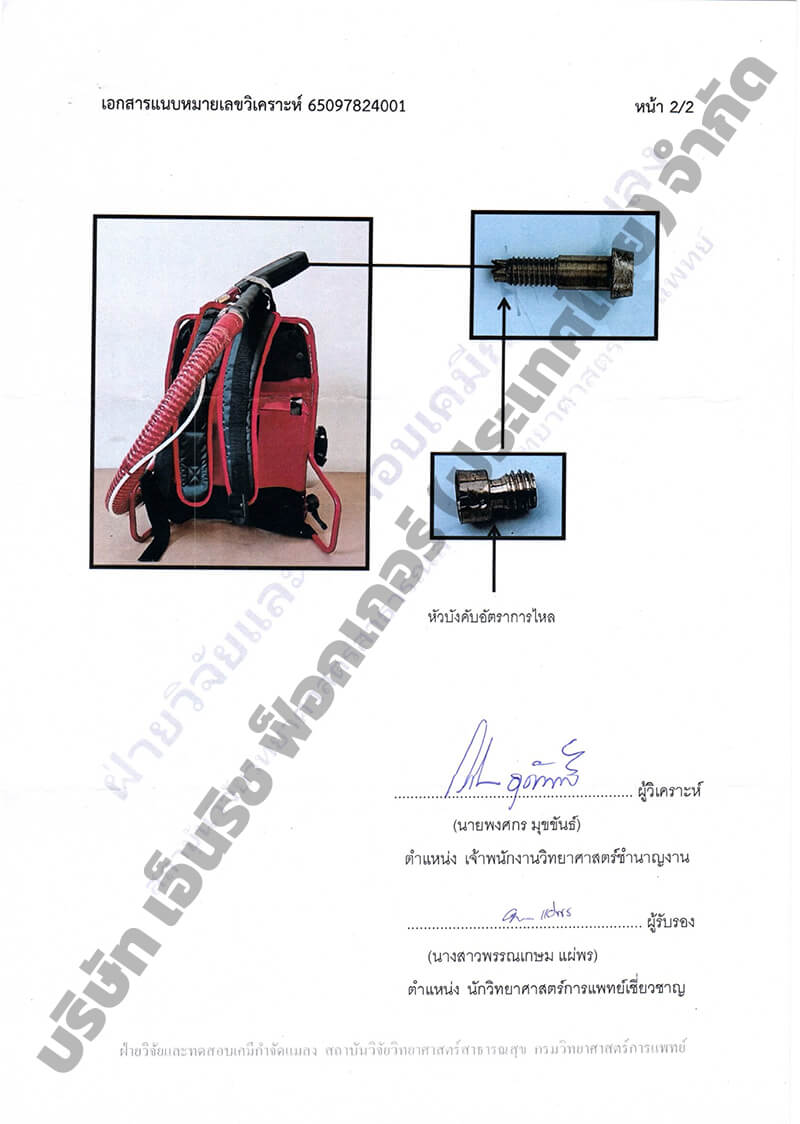 | ค่าละอองสารเคมี ที่เครื่องผลิตได้ | ค่า VMD น้อยกว่า 30 ไมครอน |